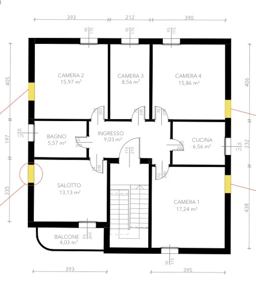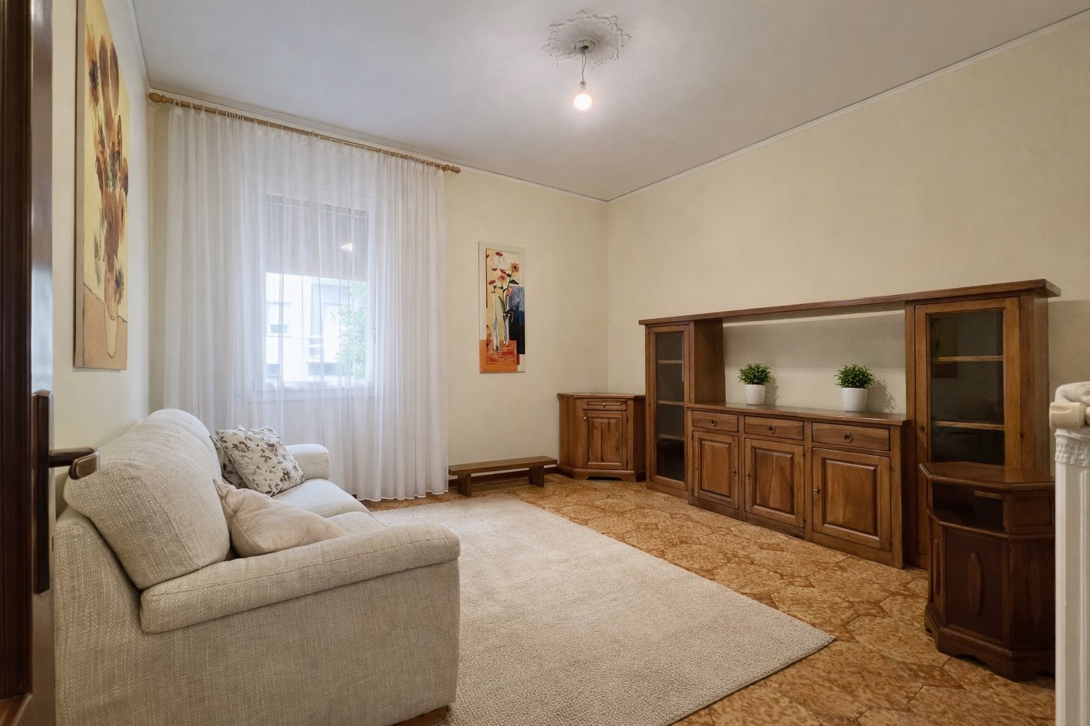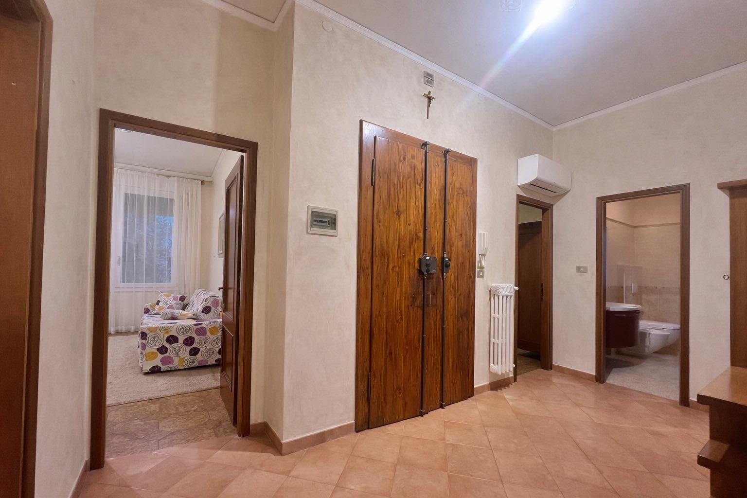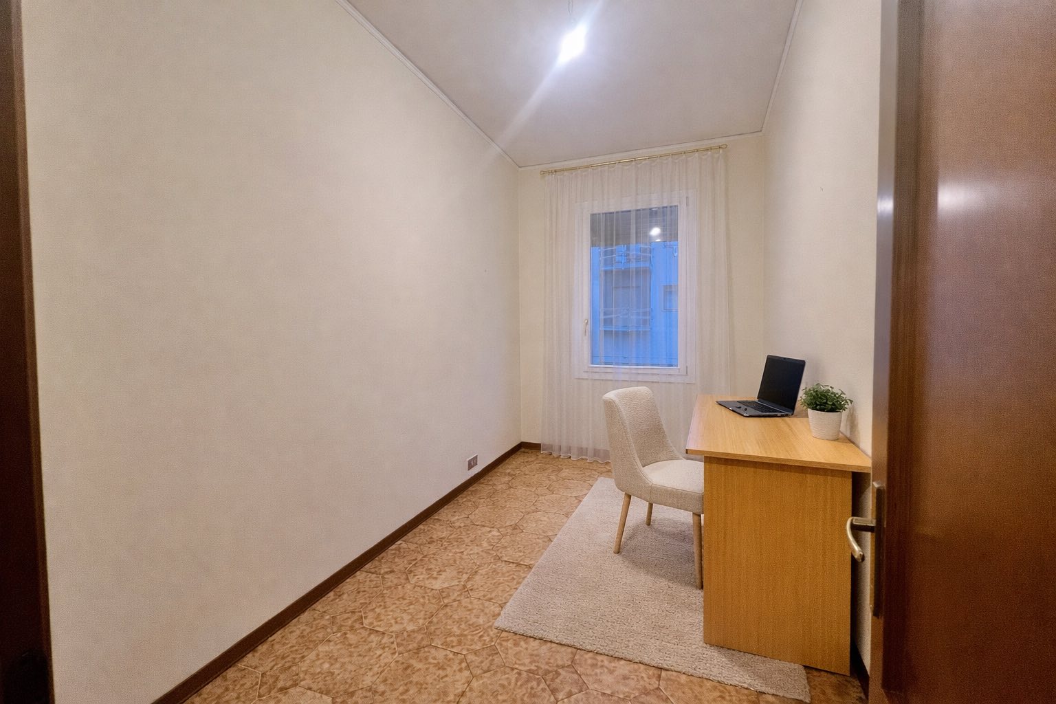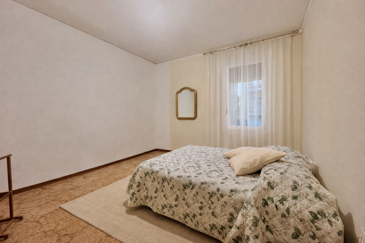 Sull’ingresso si aprono: una cucina separata e una sala luminosa, poi QUATTRO camere da letto (oggi sono diventate quasi introvabili), un bagno e un balcone. Gli spazi sono, razionali, pensati per vivere davvero la casa.