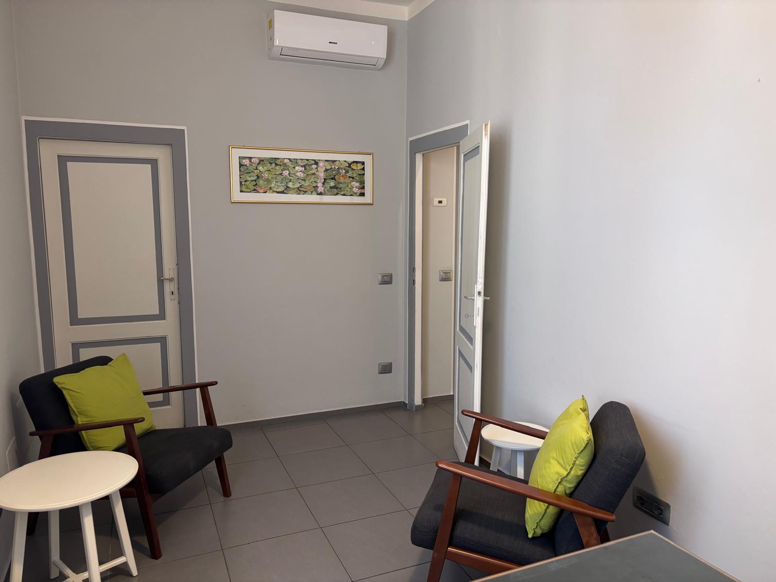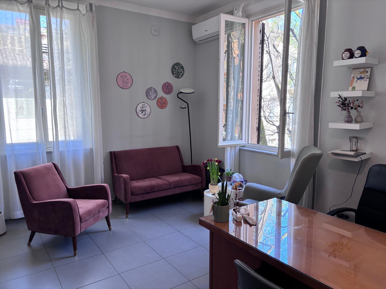 Ufficio composto da tre vani dei quali uno con terrazzino, oltre a quarta stanza finestrata ad uso flessibile, bagno e posto auto riservato in cortile. Euro 950 mensili, oltre a spese condominiali di 50 € mensili riscaldamento autonomo e aria condizionata.